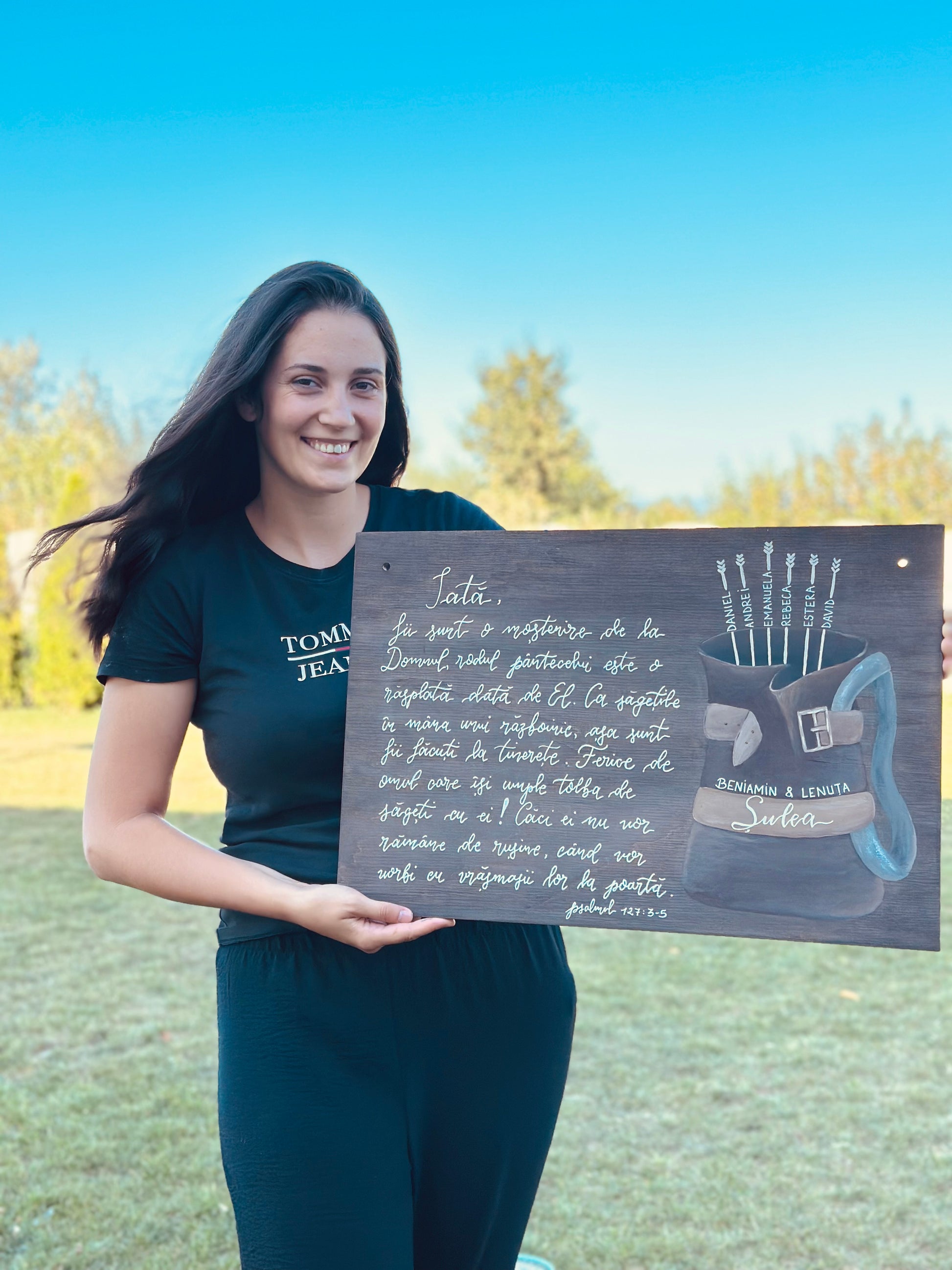 Wood frame with all your family members represented by psalm 127. Excellent gift for your parents, grandparents, a special and unique blessing for everyone in the family. Order now🤍